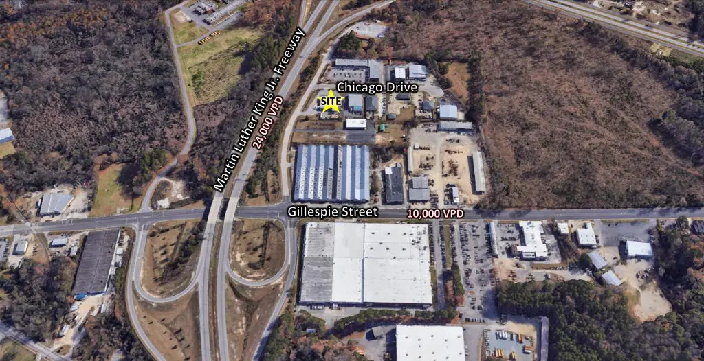 PRICE: $7,500 per month Acreage: 1.09 • Water: Public Works • Sewer: Public Works • Gas: Piedmont Natural Gas • Electricity: Public Works • Zoning: CC - Community Commercial • Frontage: 120 • Traffic_count: 24,000 VPD MLK FWY (NC DOT 2022) • Broker: Franklin Johnson Tel: 910-818-8400